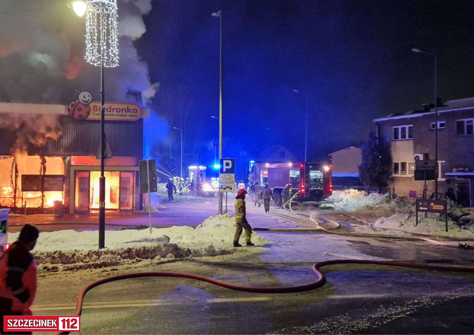 W czwartek 8 stycznia, chwilę po godzinie 22:00 do Stanowiska Kierowania Komendanta Miejskiego w Koszalinie wpłynęło zgłoszenie o pożarze sklepu Biedronka przy ul. Wolności w Polanowie.