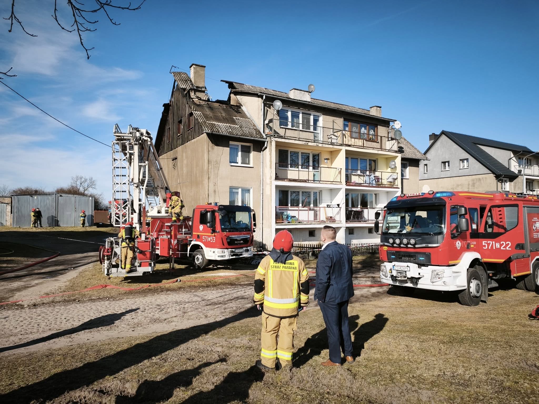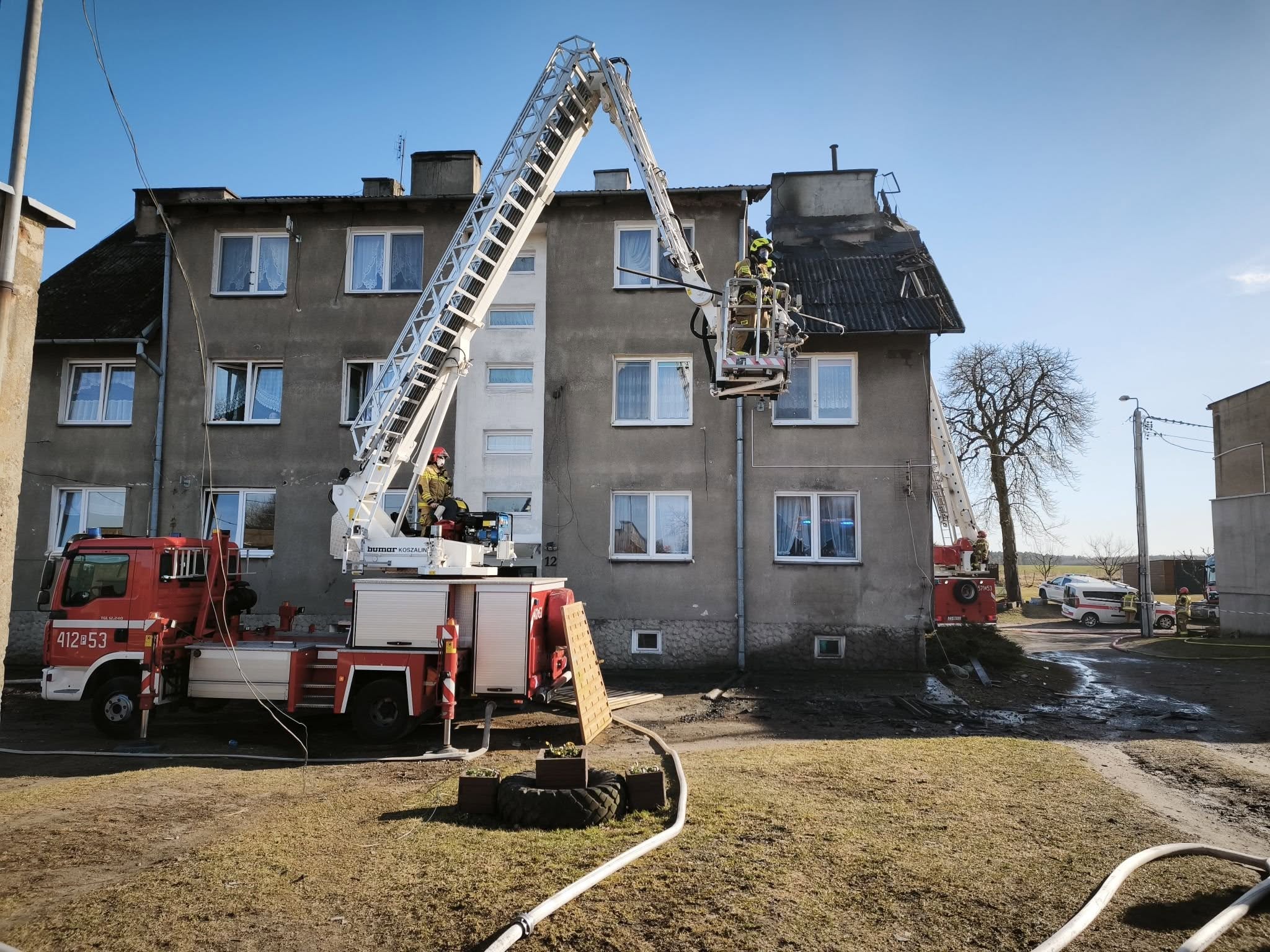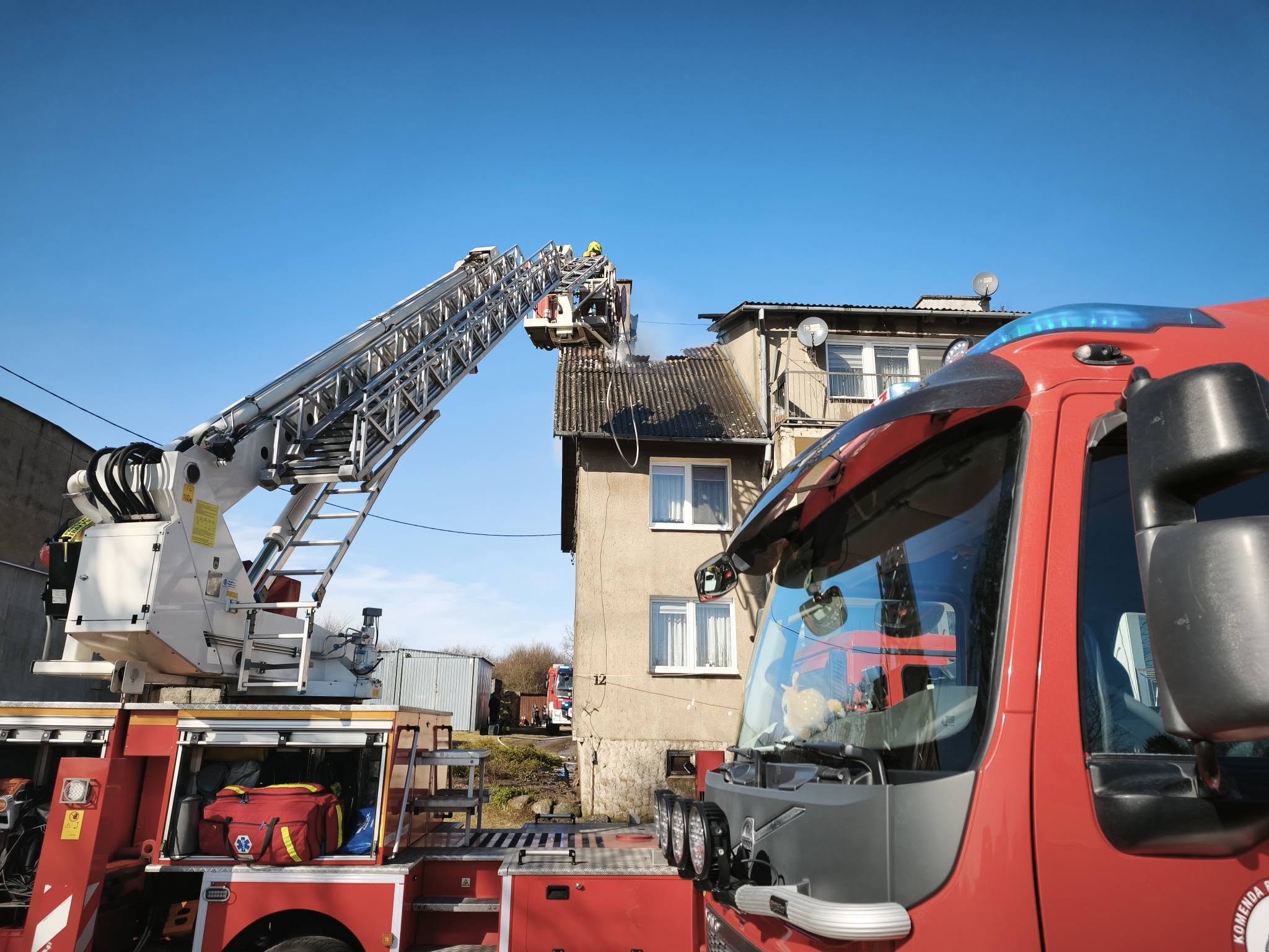 Dziś, tj. 13 marca br., stanowisko kierowania komendanta powiatowego Państwowej Straży Pożarnej w Wałczu otrzymało zgłoszenie dotyczące pożaru dachu w budynku wielorodzinnym. Jednostki straży pożarnej z powiatu działały w tym czasie w Strącznie, gdzie doszło do pożaru traw – część zastępów została więc przedysponowana.