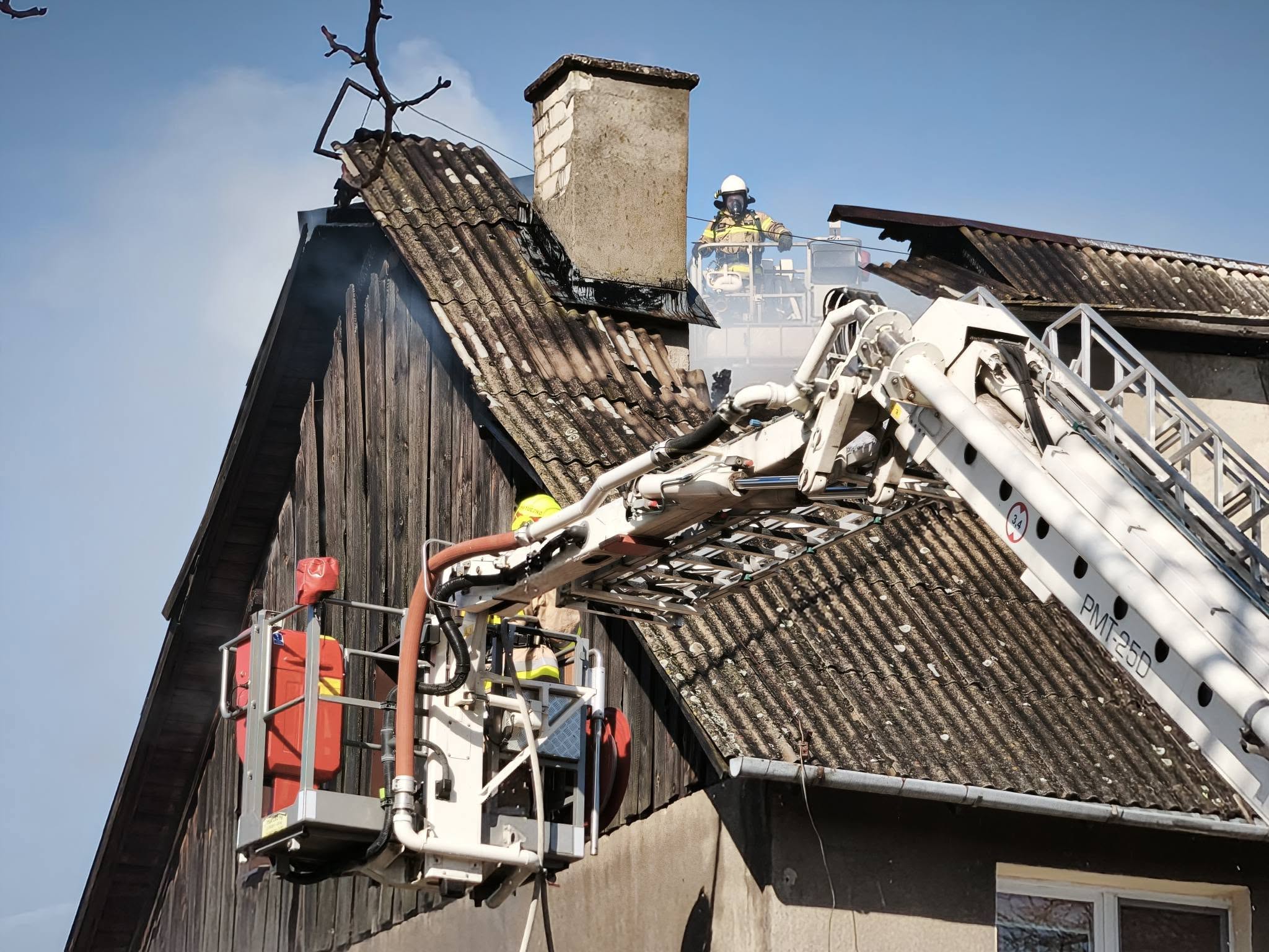 Gdy na miejsce dojechały zastępy straży pożarnej potwierdzony został pożar w budynku mieszkalnym który objął znaczną część dachu. Budynek posiadał dwie kondygnacje, a działania gaśnicze utrudniał także silny wiatr który zwiększał szanse na rozprzestrzenienie ognia.