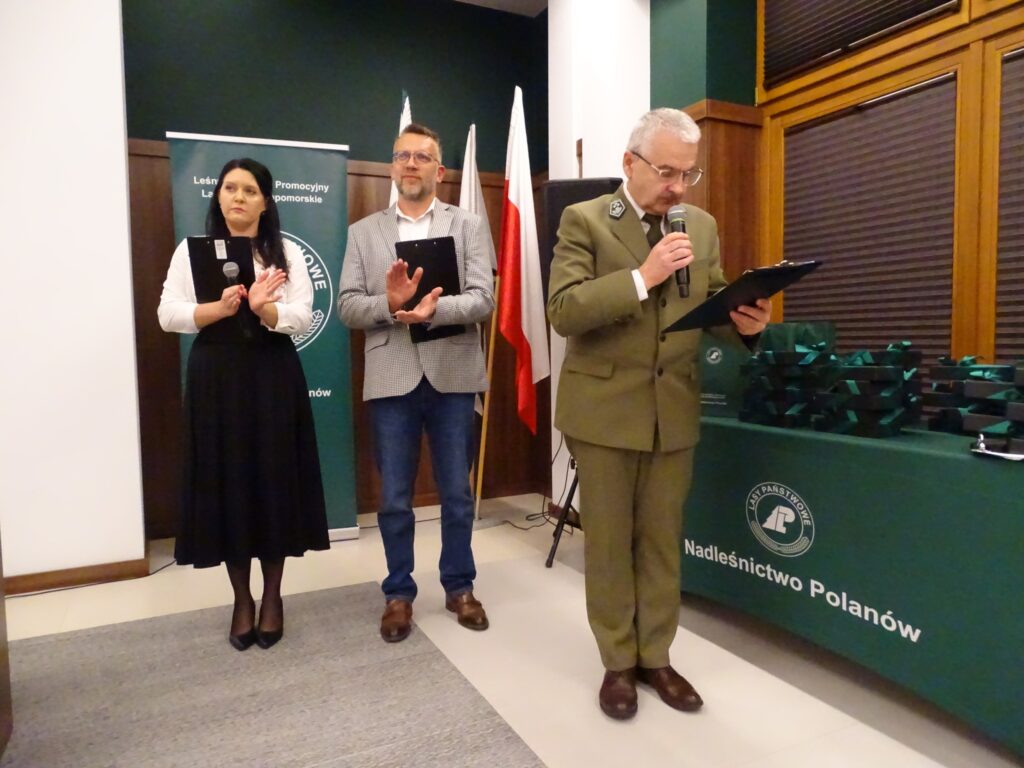 Premiera była również okazją do podziękowań. Nadleśniczy Jacek Todys złożył wyrazy uznania wszystkim osobom i instytucjom zaangażowanym w powstanie filmu, a szczególne gratulacje i kwiaty otrzymała Karolina Sominka – pomysłodawczyni i reżyserka projektu.