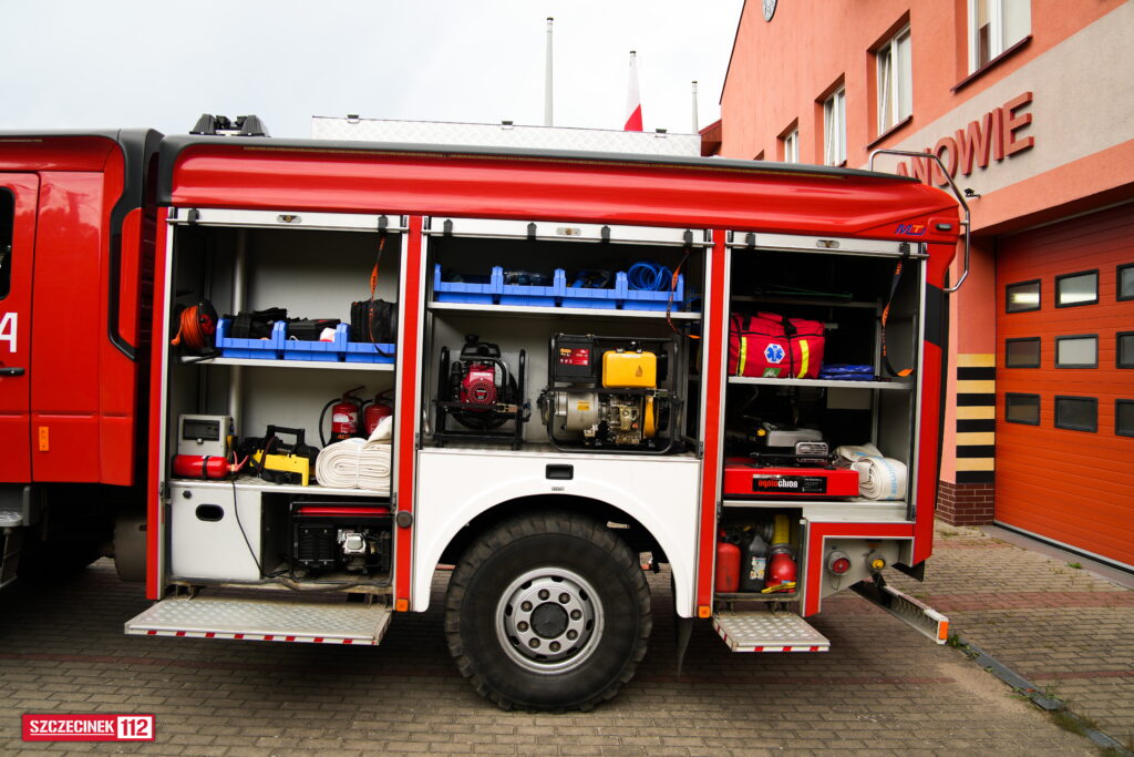 Oprócz tego na wyposażeniu znajduje się sprzęt burzący, niezbędna armatura wodno-pianowa, zestaw PSP R-1, 2 radiostacje (Motorola do komunikacji z MSK Koszalin oraz Yaesu do komunikacji z służbami leśnymi). W skład wozu wchodzi też elektryczna wyciągarka i maszt oświetleniowy. Pojazd charakteryzuje się bardzo dobrymi możliwościami terenowymi, pozwalającymi na dotarcie do trudno dostępnych miejsc, których w gminie Polanów nie brakuje.